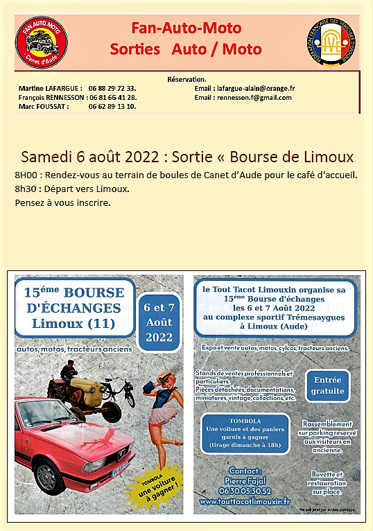 Balade Bourse de Limoux. Par Alain - 1 août 2022 0 809 FacebookTwitterPinterestWhatsApp Samedi 6 Août 2022. Bourse de Limoux
